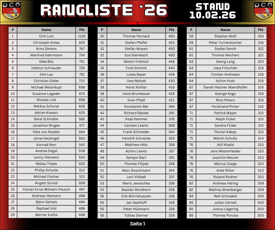 DCO Rangliste 2026