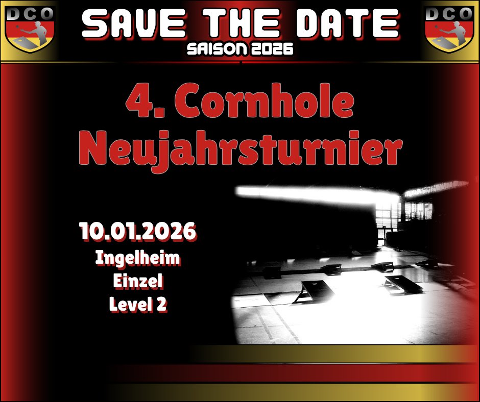 << All Events Cornhole Neujahrsturnier 2026 10 Januar 2026 Ort: Ingelheim Share This Event Diese Veranstaltung hat bereits stattgefunden. Details Datum: 10. Januar Veranstaltungskategorien: DCO Level 2, DCO-Turnier, EINZEL + Google Kalender+ iCal Export Related Events Fidei Open 2026 21. Februar Gendorf Open 2026 21. März Sachsen Open 2026 28. März - 29. März « Welland Open 2026 Niedersachsen Open 2026 »