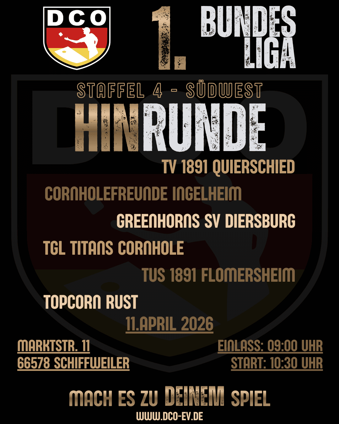 << All Events 1. BL: Staffel 4 – Hinrunde – SUEDWEST 11 April 2026 Einlass: 9:00 Uhr Start: 10:30 Uhr Share This Event 6851492 DD DAYS HH HOURS MM MIN SS SEC Details Datum: 11. April Veranstaltungskategorien: 1. Bundesliga, Bundesliga, Save The Date Veranstaltungsort Schiffweiler Marktstraße 11 Schiffweiler, 66578 Germany Google Karte anzeigen + Google Kalender+ iCal Export Related Events 1. BL: Staffel 5- Hinrunde – SÜDOST 14. März 2. BL: Staffel 6 – Hinrunde – WEST 3 14. März 1. BL: Staffel 3 – Hinrunde – WEST 21. März « 2. BL: Staffel 8 – Hinrunde – SÜD 2. BL: Staffel 9 – Hinrunde – SÜDOST »